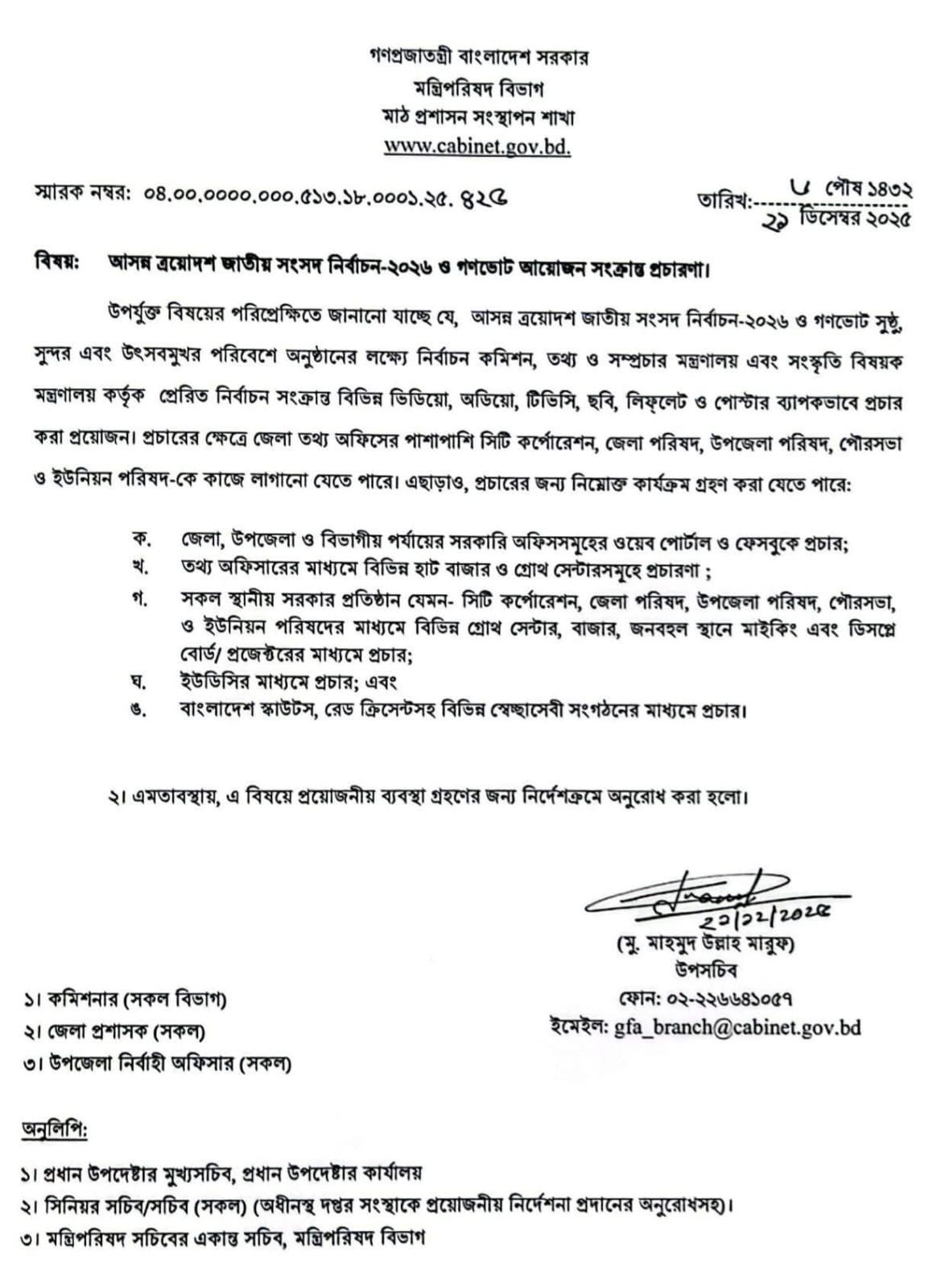 আসন্ন ত্রয়োদশ জাতীয় সংসদ নির্বাচন- ২০২৬ ও গণভোট আয়োজন সংক্রান্ত প্রচারণা